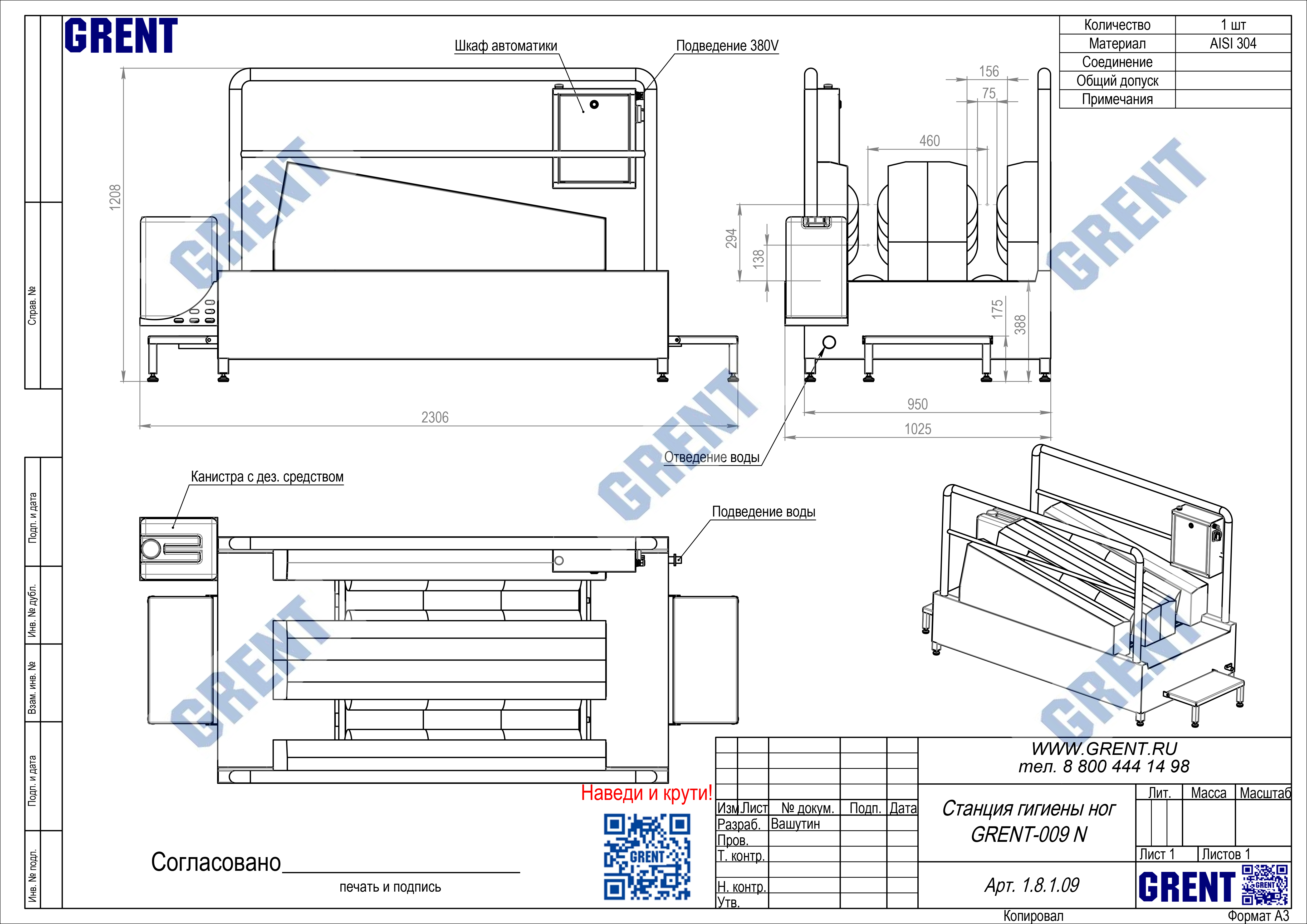 Станция гигиены обуви GRENT-009 N предназначена для дезинфекции подошв обуви персонала перед выходом (входом) из чистой зоны.