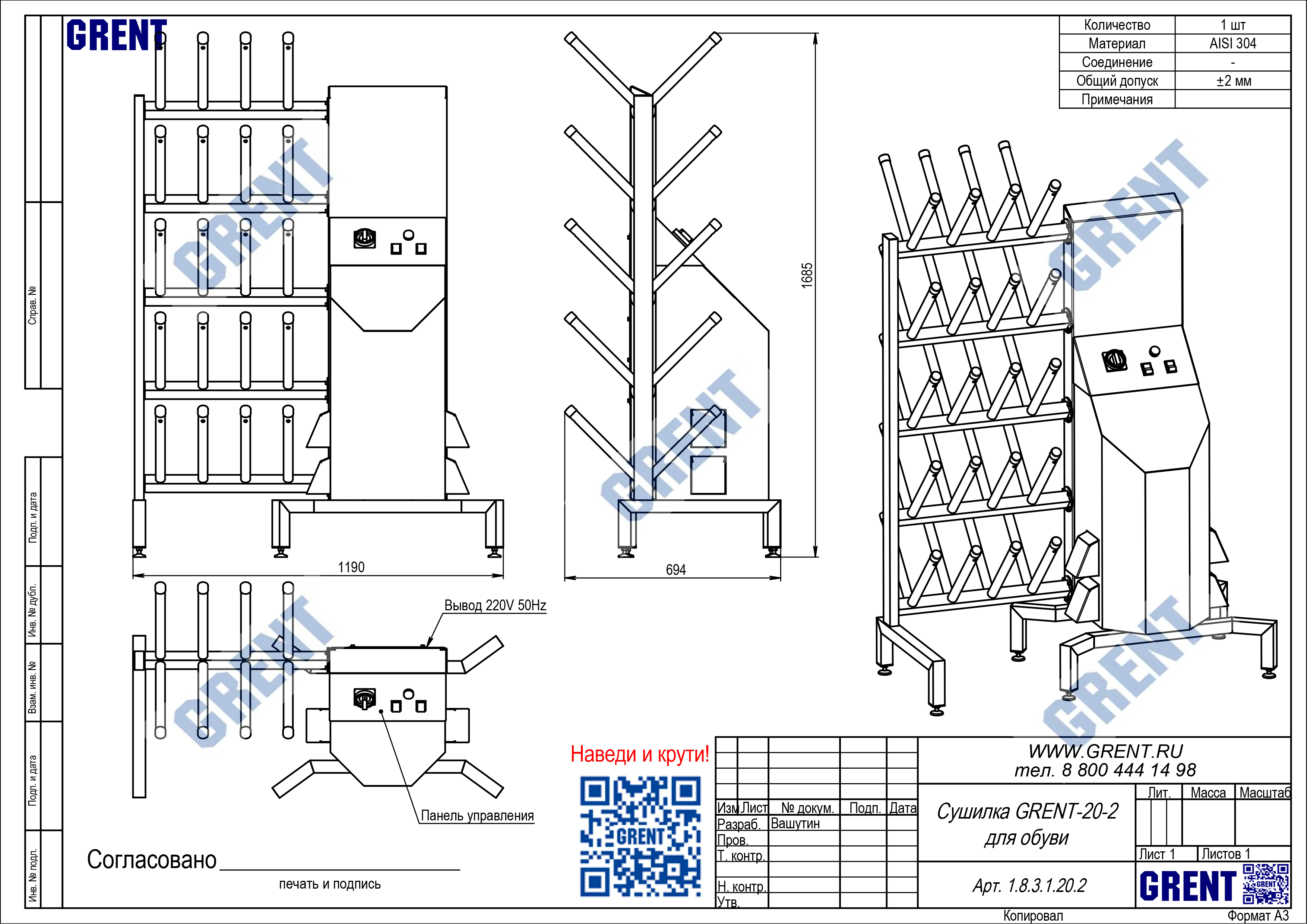 - материал — нержавеющая сталь AISI 304